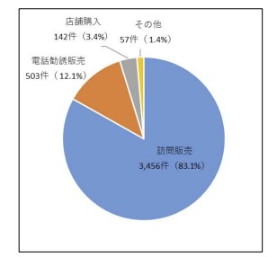 国民生活センターの調査によると、トラブル発生したうち95.2%が訪問販売と電話勧誘販売です。もちろん中にはちゃんと会社もありますが。。。