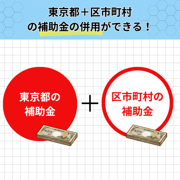 東京都と自治体の補助金を併用することで、高額の補助金がもらえるという仕組みになっています。